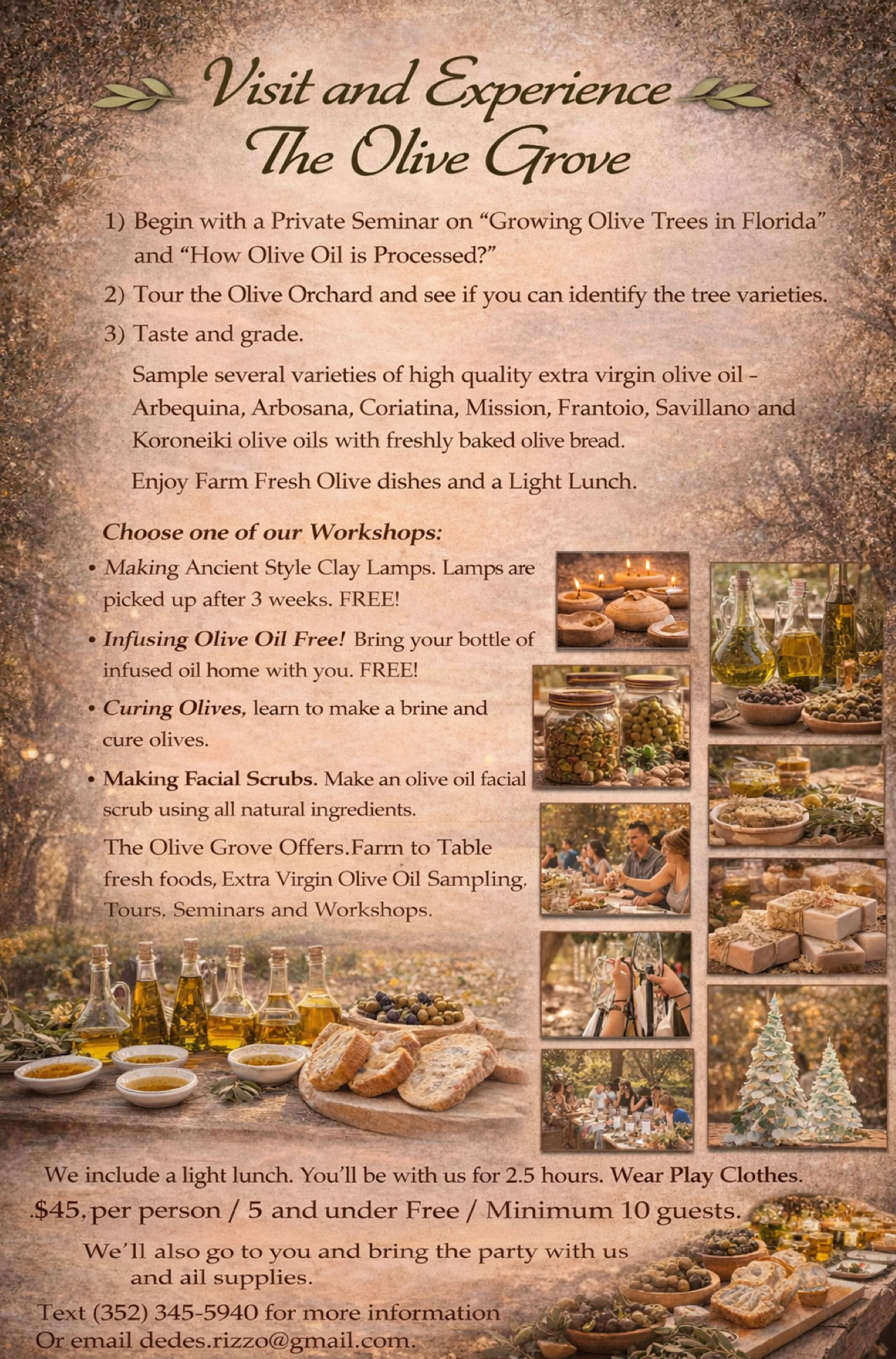 Minimum 10 guests for private tours and workshops.