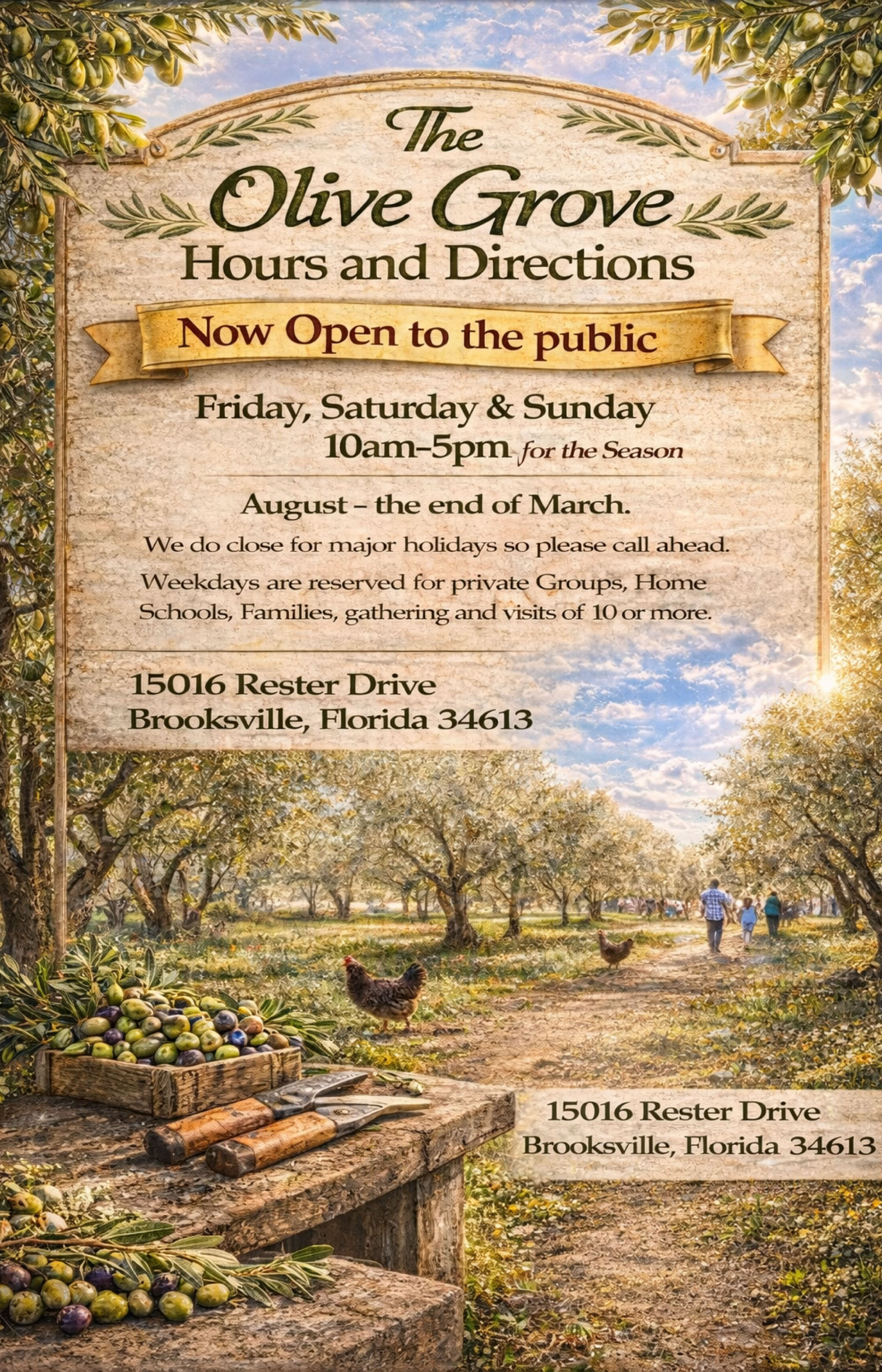 The Olive Grove Hours and Directions